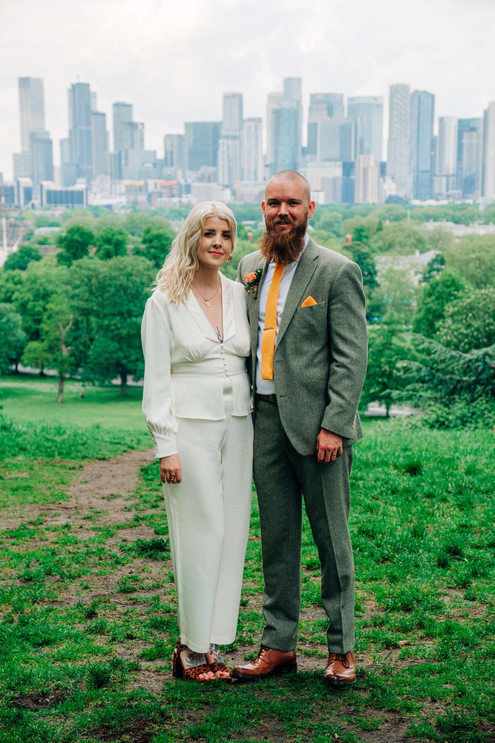When reflecting on the process, they both agreed that decision fatigue was real. Even with a small wedding, they had to sort out music, readings, outfits, and flowers, and the pressure to conform to tradition crept in at times. “We almost convinced ourselves that I had to walk down the aisle alone, because that’s what’s ‘normal,’” Katie said. “But in the end, we made choices that felt comfortable for us.”