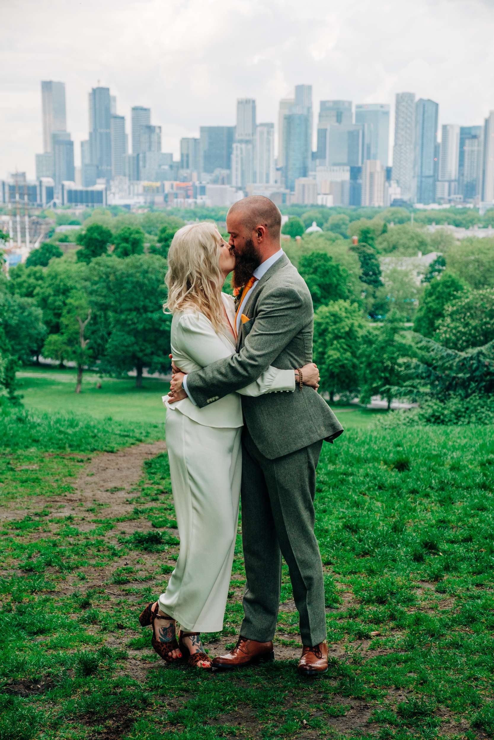 Katie and Jacob’s wedding wasn’t a culmination of lifelong dreams or the result of meticulous planning from the moment they met. In fact, they hadn’t even wanted to get married at all. But when practicality kicked in—the legal benefits, the idea of a blow-out honeymoon coinciding with Katie’s 30th birthday—they decided to take the plunge. “We wanted an intimate, no-frills, classy city wedding,” Katie continued. “I didn’t want that big ‘reveal’ moment where the bride walks down the aisle. It just didn’t feel like me. So we walked together, and it felt perfect. We also both wore suits.”