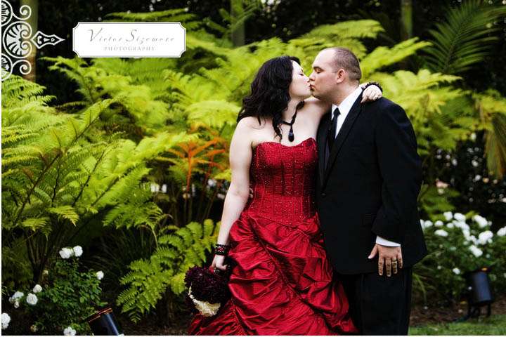 This wedding was sent to me by Victor Sizemore, the photographer behind the Carnival-esque wedding you all seemed to love so much. Tanya and Joel’s wedding is surely unique – gothy and fabulous. I love the black, white and red but the standout feature for me has got to be the rather spectacular venue! Isn’t it just a dream come true?!