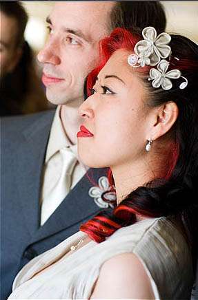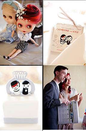 This fantastic and individually detailed wedding took place in San Francisco and was captured by Cooper Carras. I not only love the cute caricatures of the Bride and Groom, but I’m a little bit crazy about the Bride’s vintagey outfit she changed into fro the outside shots.