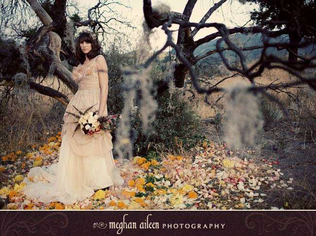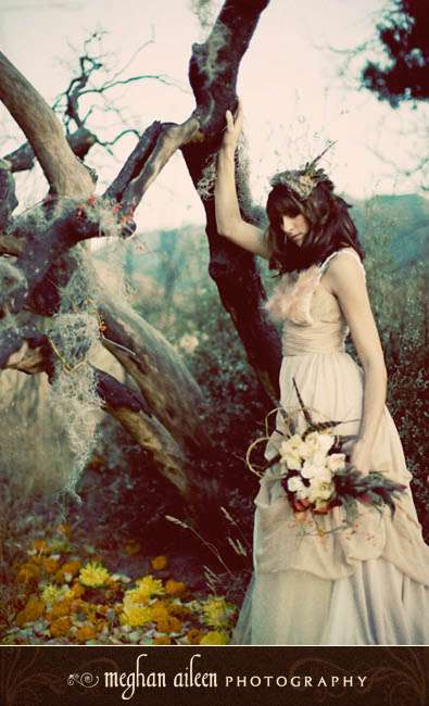 I am in the process of trying to find out where this dress and fantastic hairpiece are from..but for now just check out this amazing earthy, woody, rustic bridal shoot!
