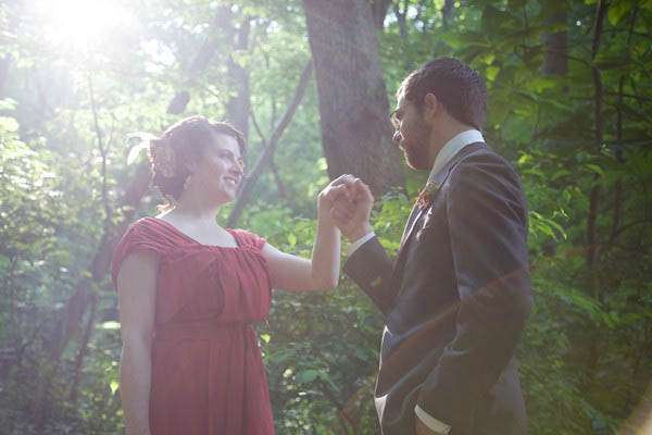 The wedding took place at the Valley Green Inn up in Fairmount Park in Philadelphia, starting off with a quick outdoor ceremony officiated by Jess’ uncle. The couple chose not to have rings and opted for a very simplistic approach to their flowers, using little bundles of wild flowers for the bouquets.