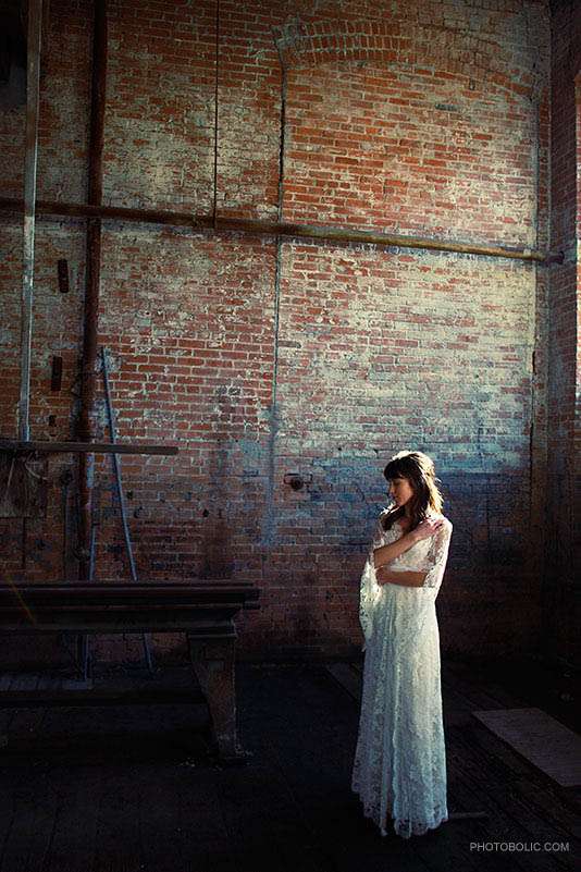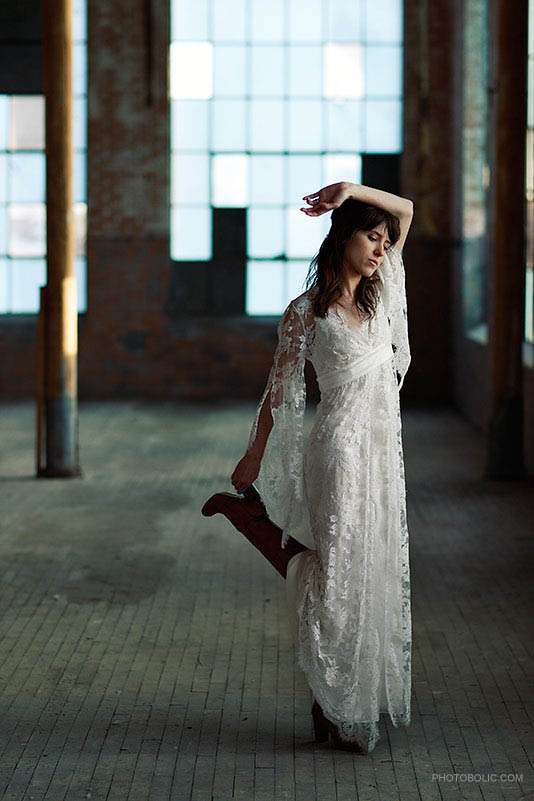 Hurrah! another set of images from Wei Quek. This gorgeous shoot took place at the cotton mill near Dallas, a location that made for some fabulous textures and light. The dress is by Nicole Miller.