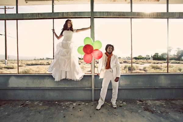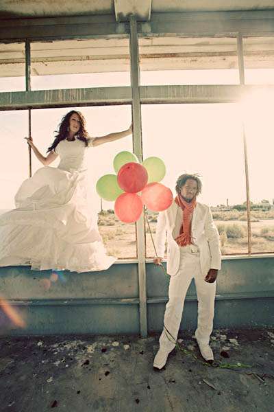 Maurice & Tasha had a fabulous photo shoot with Jagger Photography in the middle of (as described by the photographers) ‘a dry, dirty desert.’The results are anything but dry and dirty – the contract between the stark landscape and the colourful couple (and the balloooons!) is just gorgeous.