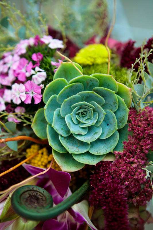 The florals were really unusual. I heart succulents and fiddle heads! And what’s not to love about succulents and fiddle heads with orchids and (what appear to be some sort of) ginger flowers?! I can find out for sure what those were.