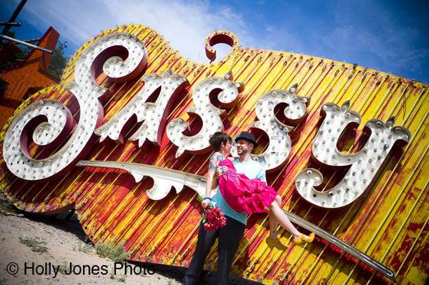OK so I’m pretty much giddy with excitement over sharing this Las Vegas engagement session and wedding sent to me by photographer Holly Jones. Chronologically it makes sense to start with the engagements right? I am c-c-c-crazy about Teneisha’s pink dress and yellow shoe combo and of course the Neon Graveyard makes for a completely awesome backdrop. EEEK I can’t wait to show you the wedding laterĀ – she has the most gorgeous green, polka-dotted dress!