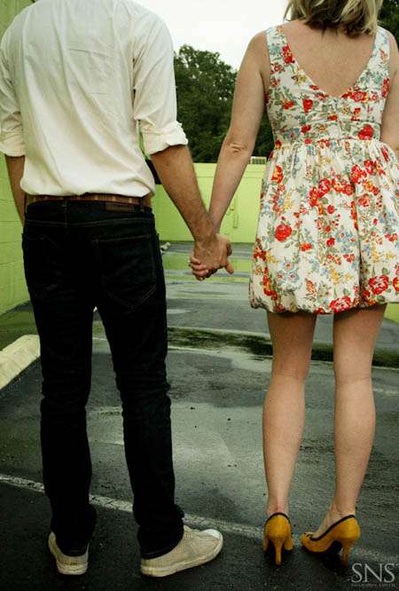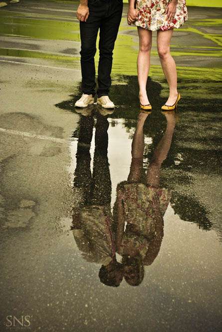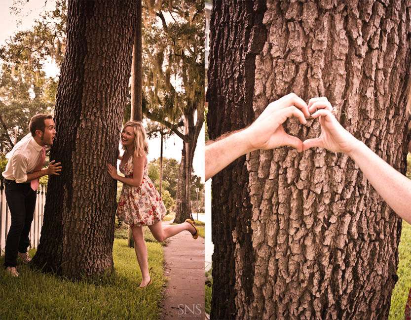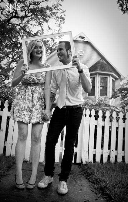 Jerriann & Sean are almost too freakin’ adorable to bear, and their engagements are just too cute! Her dress (plus killer legs!), his tats, the faux photo frame thingy – cuteness personified