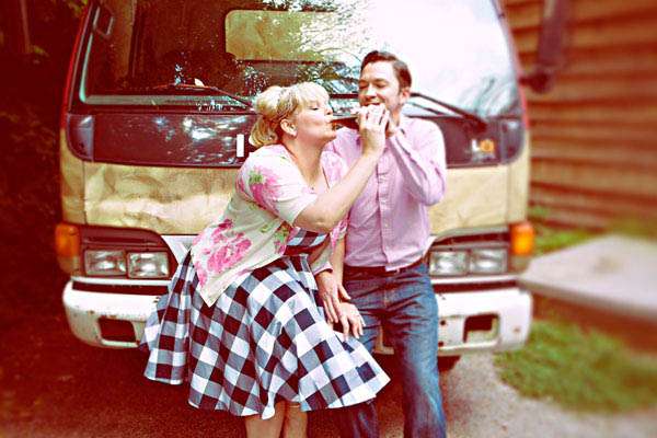 Last post for today… this just landed in my inbox and oooh how pretty and fun these are. Anthea & Andrew started their wedding celebrations with a low key country style rehearsal meal complete with Anthea in a super cute gingham print dress, which lead nicely in to their vintage style wedding day, where Andrea’s personal sense of style took centre stage again. Her beautiful dress was re-created from her Mother’s wedding dress, and who can’t but smile when they see the photographs of the couple with the crazy straw-glasses!?