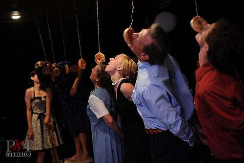 Insead of dancing, the wedding was rounded off with fun and games including eating doughnuts on a string, two photobooths, a candy and a popcorn bar.