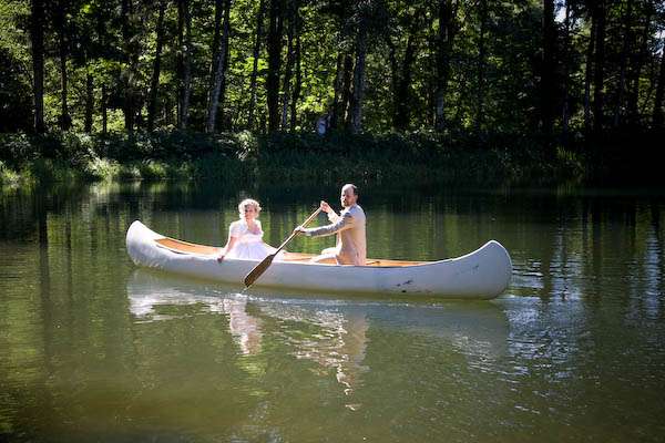 Chris & Todd had two reasons to celebrate on their wedding day as Chris was 7 1/2 months pregnant! Her gorgeous dress and bolero were custom made by Elizabeth Dye and complimented her baby bump beautifully. I hope I look this radiant if I ever have kids. The couple incorporated everything they love into the day, as photographer Heather Hawksford described it – ‘canoeing, horseshoe, croquet, Pete Krebs Trio, The Dickle Brothers, cowboys & rockstars chatting over homemade beer’