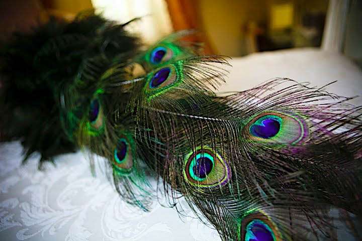 The gorgeous Bride Kristi, who owns her own jewellery company named Diamond Willow designed and DIYed the whole wedding – from the centrepieces to her stunning peacock bouquet, the boutonnieres and her own flower hairpiece. She wore a sample gown designed by Lian Carlo and her Mum altered the neckline and made the train detachable for dancing.