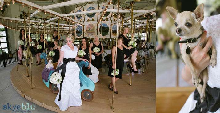 The couple continued to rock their awesome kitch/rockabilly style whist still managing to pull of a pretty damn elegant wedding. The dog was of course there being his cutie-pie self and the styling was second to none. From the vintage vespas (again) to the retro suitcase, from the kinky killer heels to the merrygoround – this wedding is one of pure rock n roll class.