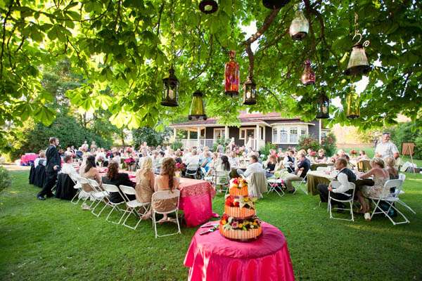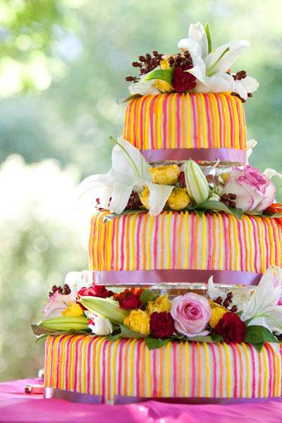 Dave & Pam sure let their imagination run wild with their gorgeous wedding at Canada’s Kopje Regional Park. The Bride is particular loves bright colours and so decided to reflect that in their day by organising and designing the whole thing herself. Her dress was by Maggie Sottero and the awesome stripey cake was made by Wedding Cake Creations. For the flowers they relied on the expertise of Art Knapp Plantland & Florists, which meant they got the perfect pink, orange and red (who says they don’t go together!?) flower combo to compliment the rest of the decor.