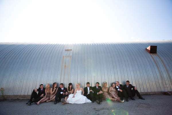 I love their completely non-boring group shots too! The photographers wanted to find something different and were worried that they might not in such a small town. However when driving one day, the spotted the a mechanic’s garage on the side of the highway and after asking a pretty confused owner permission to use the site they had found their perfect spot. The antiquey sofa and the fun masks add a great finish to the shots and transform them into something that is anything but dull.