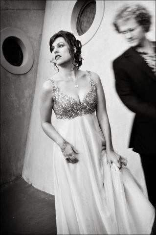 Aww pretty pretty sparkle dress! Faith sure looks rock n roll glam on her wedding day back in April! It’s not only the dress that I love – her faux tats are super cute and the peacock feathers instead of a traditional floral bouquet are of course stunning. Her one of a kind, custom dress was designed and made by Marelize from Gingered in South Africa. The gown was based on Jenny Packham’s Papillon dress, but being in South Africa getting hold of the origianl proved too difficult so Faith decided to get her own version made. Marelize even spent over 45 hours hand sewing on all the beads on the bodice – wow…Glam rock on!