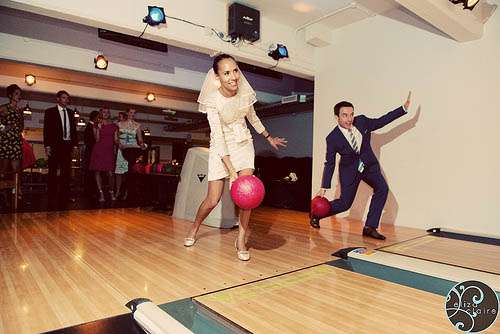 Remember this aaamazing wedding at Shoreditch House in London? Well my lovely friend Liz (like, real life friend not just online – we’ve been out for cocktails and everything!) just sent me this wedding at the same venue that she shot with Nadia Swindell this weekend. You might recognise the bowling! How fab is that – I wish I’d found a wedding venue complete with bowling lanes.