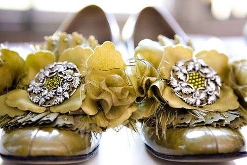 I had them resoled at Peter & Sons in South Windermere shopping center. Insoles and toe embellishments done by me. Sterling acorn brooches were purchased on eBay. Swarovski hot fix rhinestones are olivine