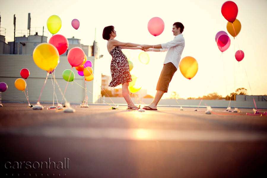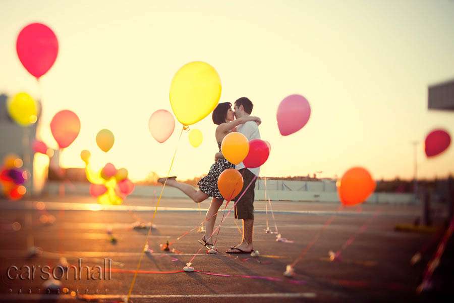 Ooooooooooooooh! Do I get to feature the best stuff or what?! Victoria & David had a beautiful and fun engagement shoot on a shopping mall rooftop. They wanted an urban feeling shoot and photographers Fiona & Bec chose the disused rooftop car park for the location. What I love so much about these is that they’ve used the balloons in a totally different way to how we normally see them.