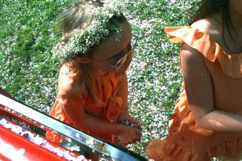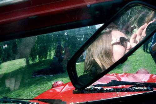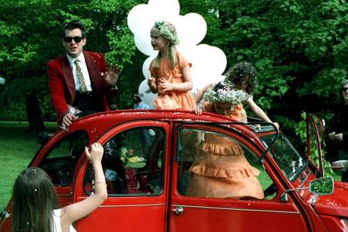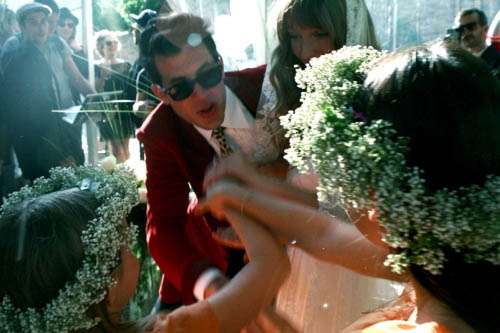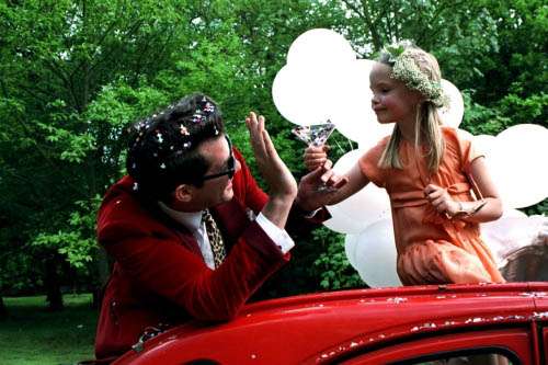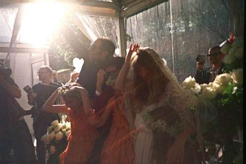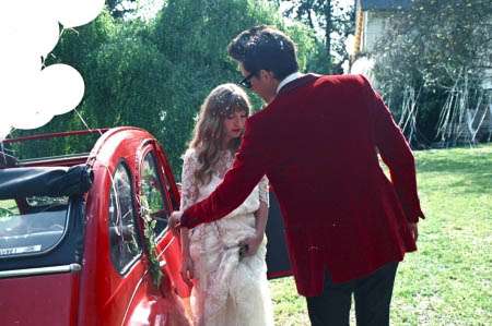 Forget everything you think you know about weddings. This celebration makes all that seem futile. Can you imagine being there? Cramming into a tiny tent, siting on your friends laps or on the floor just to see your best friend’s get married. She’s wearing a stunning vintage gown (which the little girls all clearly adore!) and he’s wearing a fabulously retro velvet suit. And the car…and the swing…and the random panda head…oooh oooh oooooh!