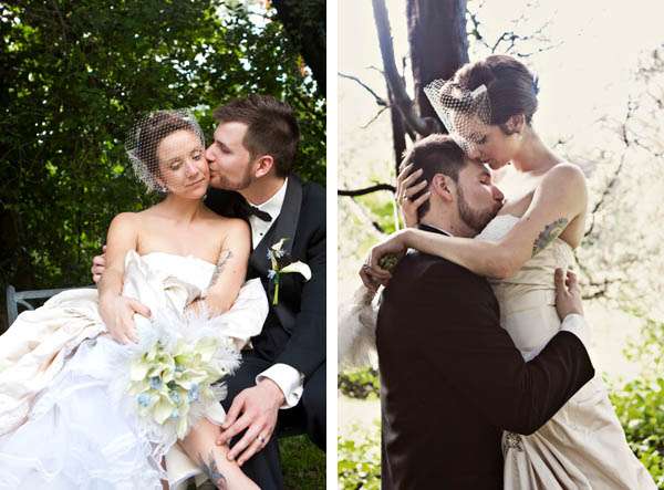 Jenna looked the perfect rock n roll bride in her Alvina Valenta dress and hairpiece from Liaison on Etsy. The bridesmaids dresses were the stunning Vivien Leigh dress by Siri and those bouquet/corsage wrist combos – they all looked quite the rockabilly princesses!