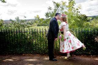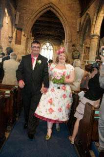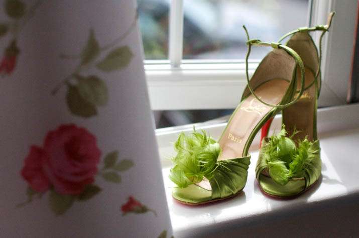 When reader Kate sent me a sneak peak of her wedding a few month’s ago I knew it would be perfect Rock n Roll Bride material – especially after I laid eyes on her country garden style Candy Anthony dress (which perfectly matched their flower choices) and Christian Louboutin shoes (a steal and brilliant find from Ebay!)