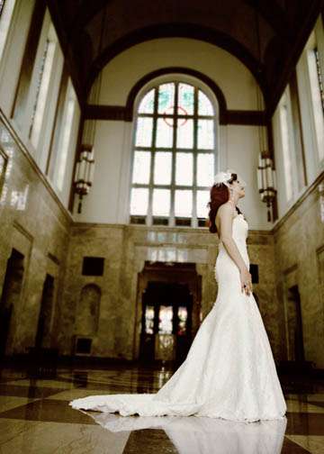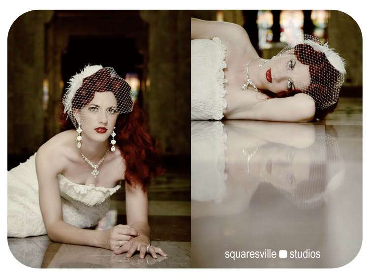 Starting off the week in style is this stunning red haired bride. The shoot took place in a funeral home of all places (her father works there) but the setting certainly made for a rather grand and unusual backdrop. Yummy indeed.