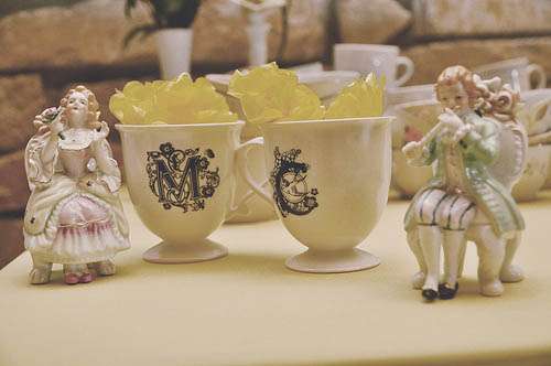 Mysi wore her Mum’s wedding dress but had it re-vamped by Dame Couture in Chicago. Their reception decor was based on a house Craig grew up in, which was built in the 1800’s and was actually a funeral home for a long time! They used antiques bought and borrowed to give it an authentically ‘old’ feel. The tables were littered with vintage style pin backs, skeleton keys, seed paper packets, dark chocolates re-sleeved in vintage book pages. Each table also had a stack of books and vintage teacups full of flowers as the centrepieces.