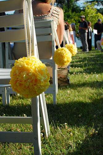 Mysi & Craig got married at a lodge in the middle of nowhere, near her parent’s house in Illinois. They made a lot of the details – throwing themselves wholeheartedly into the DIY! They created their own programs to look like newspapers and got their invites printed onto handkerchiefs, the design of which was by the amazing etsy artist Heather Jenny.