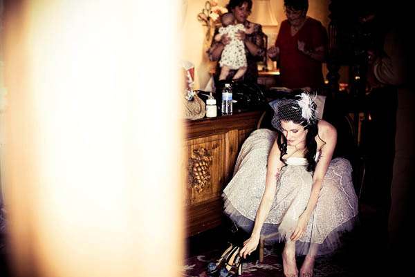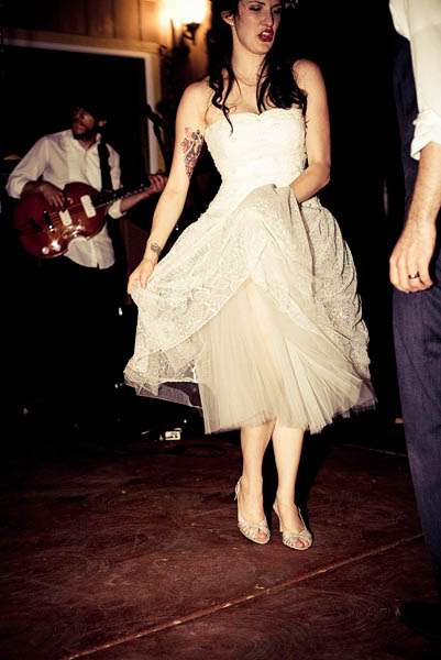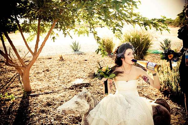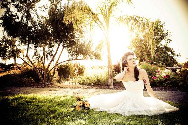 Carly & James tied the knot at a winery in Sanger, CA. Her dress was an authentic vintage tutu style dress and feathery veil and James didn’t even want to shave on the day – he rocked it though right!? So without further ado…prepare to be blown away by greatness. A Rock n Roll Bride classic if ever I’ve seen one.