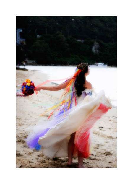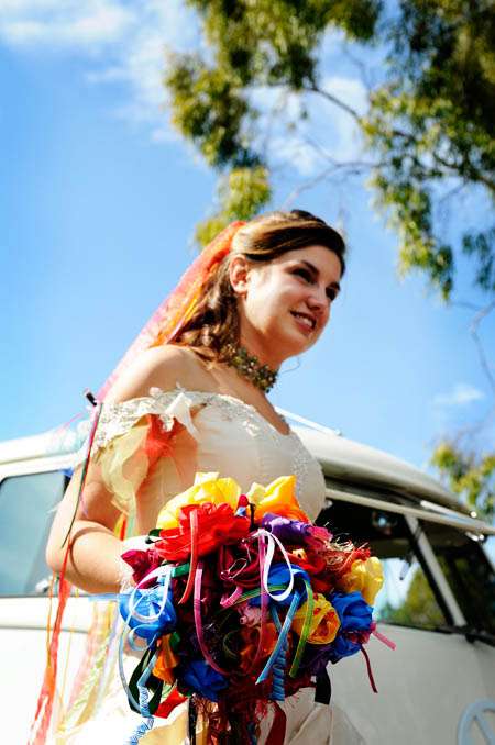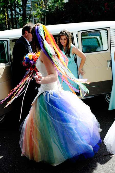 As soon as I posted a sneak peek of this wedding and that dress last week you went crazy for it..I knew you would! So it is with great pleasure that I bring you the full set of images from this amazing rainbow wedding. The event took place on a beach in Australia and the bride…well…I don’t think words can justify that dress!