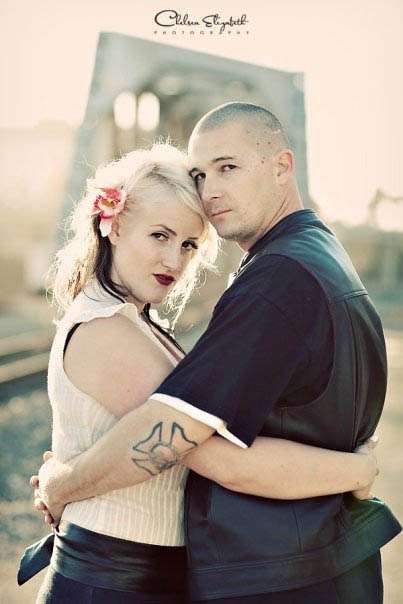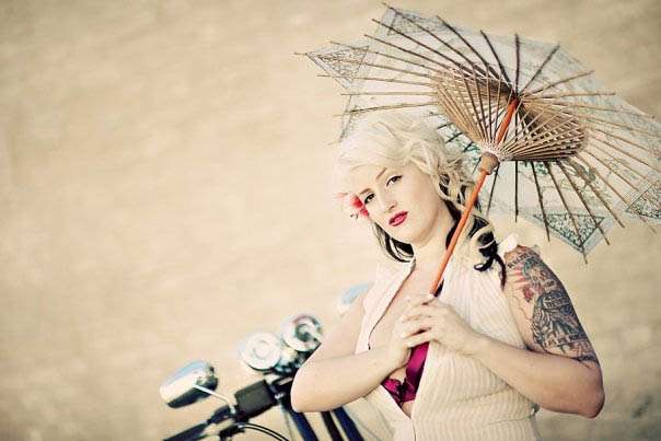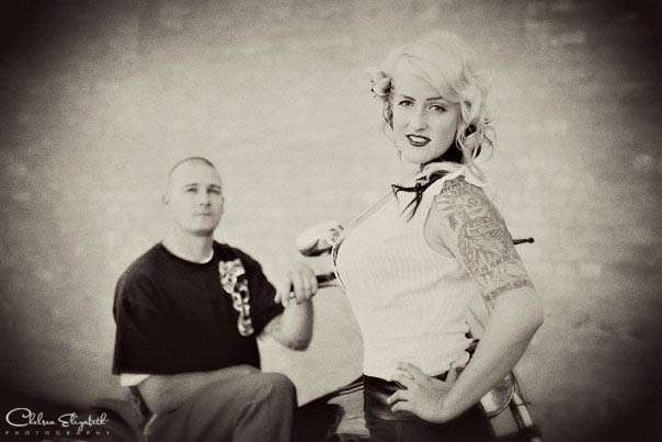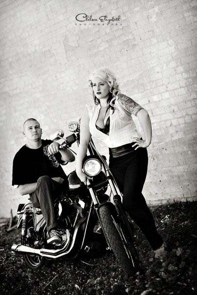 Coolest couple ever or what?! Rikki & Christian certainly rocked out on their engagement shoot – complete with motorbike, rockabilly styling and that way-too-cool vintagey parasol. I don’t think I even have to mention the tats…you know I love them!