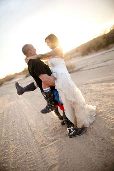 Oh Loni & Todd you are too damn awesome for your own good. Anyone that rocks out, in a desert, on a dirt bike…in a wedding dress is a-ok with me.