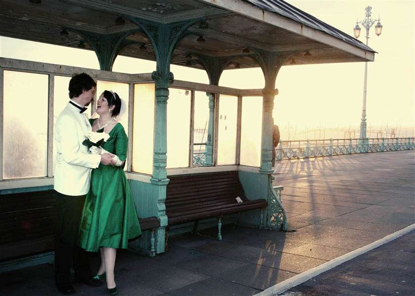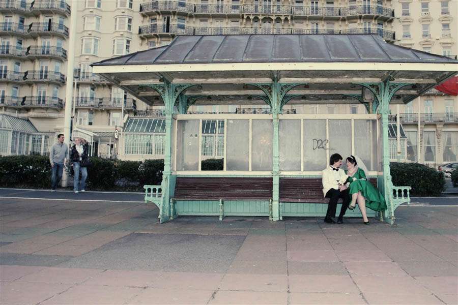 Brighton is full of eccentric characters and this wedding was so fun and quirky, even the registrar had kooky shoes and piercings. The bride and groom were very cool – her mother in law made the dress and I think she looks fab, they got wed in the pavillion, then onto a double decker to the Grand Hotel for some food and drinks….It was all about their colourful personalities and the offbeat alternative nature of Brighton which I made sure to feature in as many of the shots as possible.