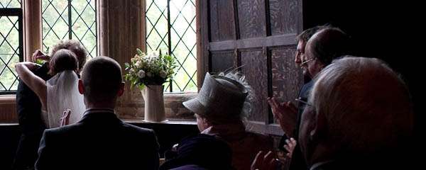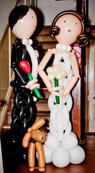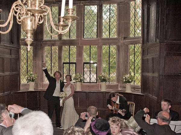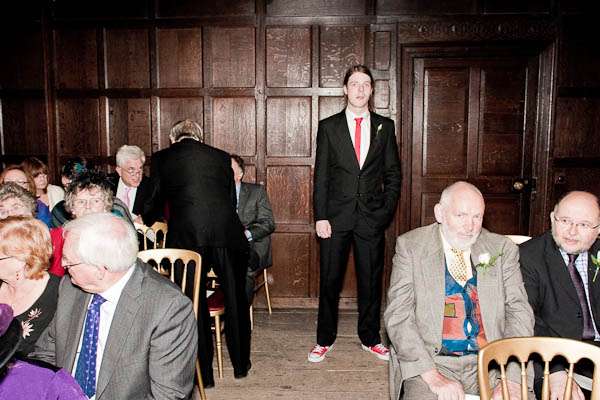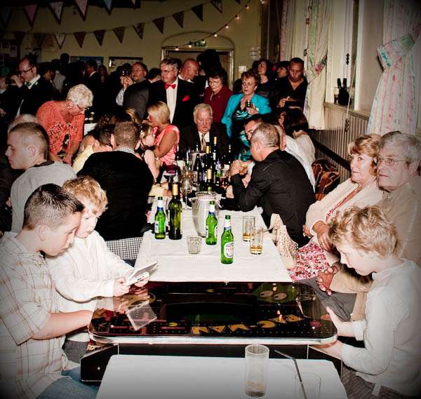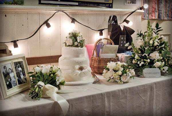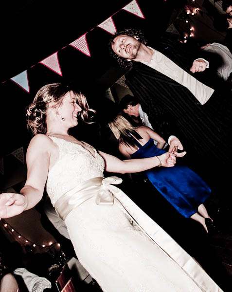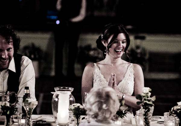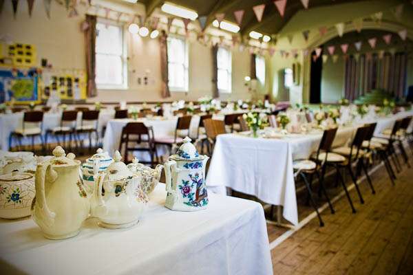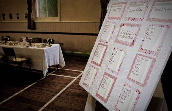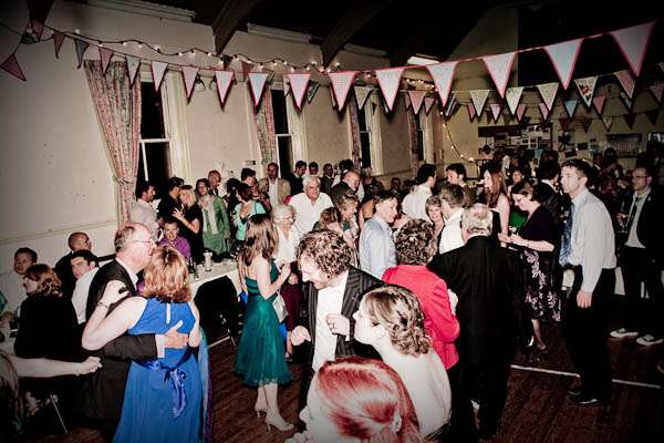 They held their reception at Parochial Hall, 5 minutes walk away. “It’s a really old church hall with a scrubbed wooden floor and a stage and a hatch into the kitchen.” Jules told me “It’s the sort of place that brings back memories of childhood for everyone who was ever in the Brownies or the Scouts. We loved it as soon as we saw it and it became our whole inspiration for what turned out to be our dream reception – an old fashioned family style get together. It was all very DIY – we had lots of help from friends and family who were fabulously keen to get involved and set about arranging tables and chairs and shinning up ladders. Our caterers Farmers Fayre really got into the spirit of things. Rather than have a formal style dinner we had joints of lamb brought to the tables and one person per table was then nominated carver – complete with chef’s hat and apron. Even Leighton was up out of his seat handing round the vegetables – it felt like Sunday lunch with the family. As the evening guests started to arrive we had a cocktail hour complete with big band classics playing and Farmers Fayre bar staff serving up Cosmopolitans and Mojito’s.”
