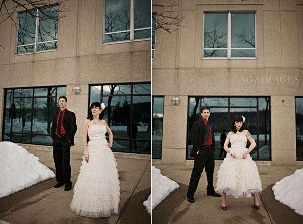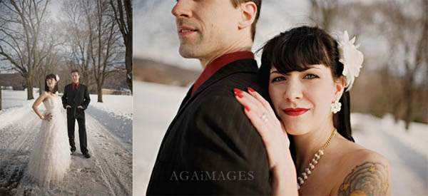 New York photographer Aga of Aga Images has always been one of my favourites. Not only is she one of the sweetest, loveliest gals on the internet but she never fails to blow me away with her darling images…don’t get me wrong though, this ain’t no sissy photography, in fact Karin & John’s vintage snow day after session is RAD! I am crazy about this dress and, of course, Karin’s awesome tattoos. OMG I have to get myself to the tattoo parlour stat!