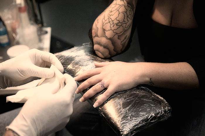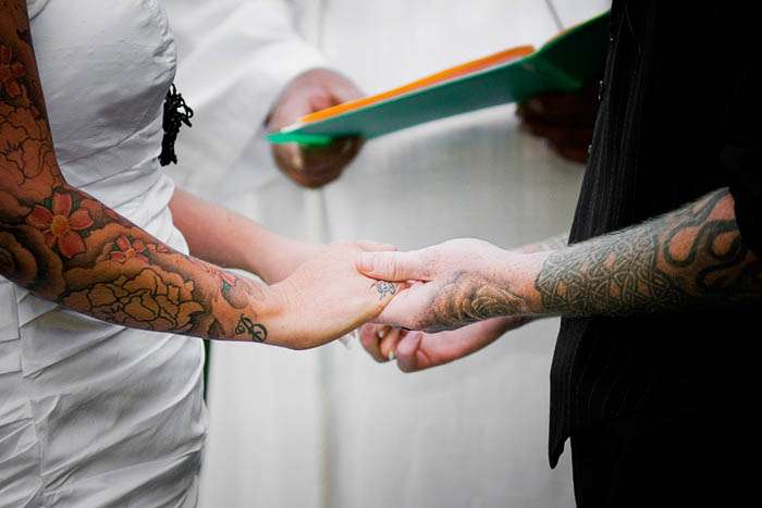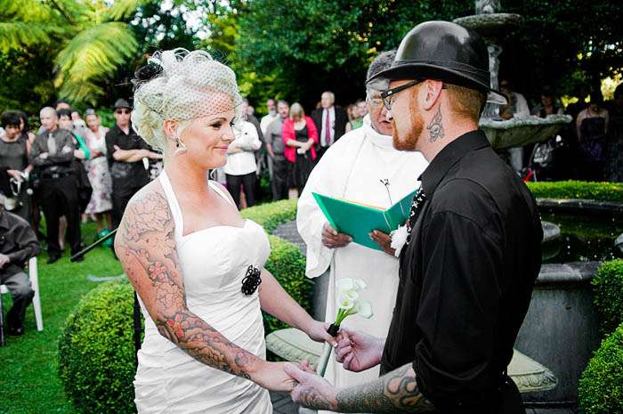 “The night before the big day we all scooted over to Levin to see Dave Stevens at Electric Ink Studio for the tattooing of Noel n’ Denise’s wedding rings. Dave tattooed Noel. Noel tattooed Denise, and I winced like a little girl at the sight of the tattoo gun making its mark on their fingers. But the photos were uber cool, and there was definite anticipation in the air for the day to come.”