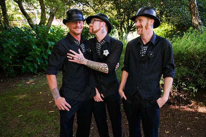 “The stunning creation worn by Denise on her big day was designed by Jacoba Wyeth. The bowler hats worn by Noel n’ the guys were designed by Trevor Lamb, and their cake was made by Fairytale Cakes.”
