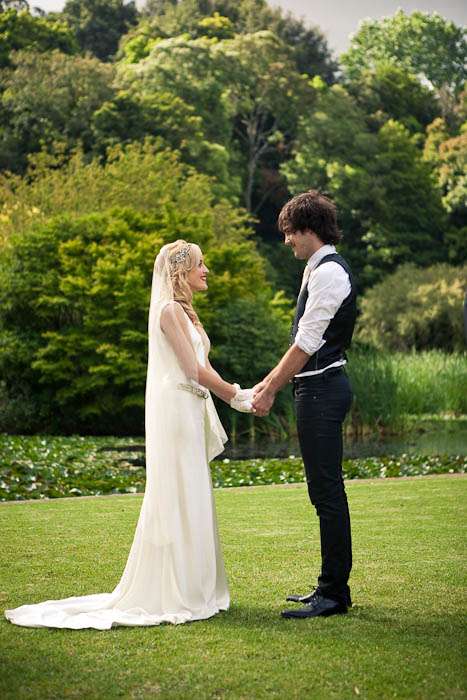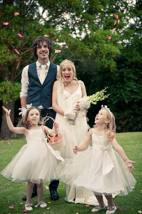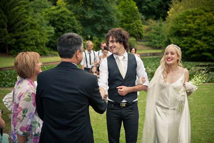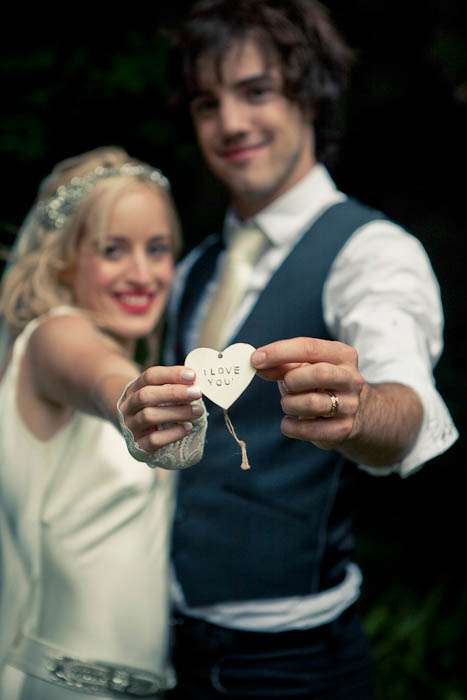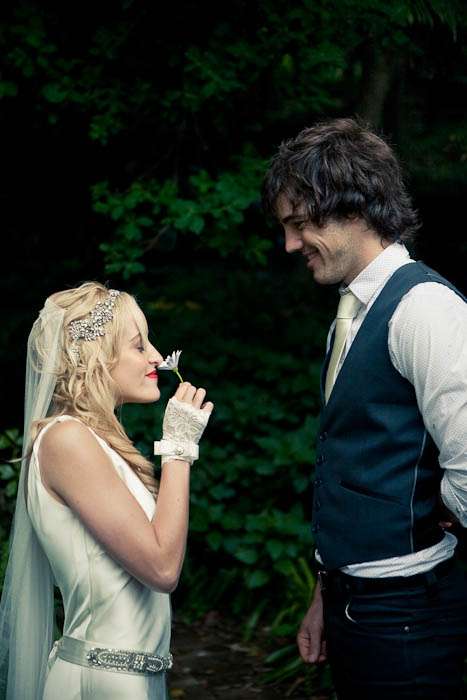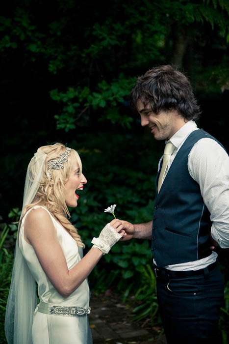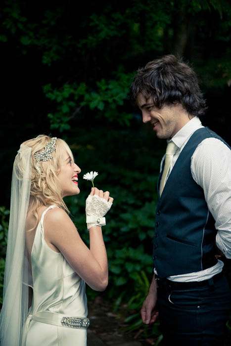 Elodie & Greg’s wedding was one I fell in love with as soon as I saw the first frame. Her amazing vintage-inspired outfit, jewellery and so-now white lace gloves make me smile with glee and his rad groom style puts every other groom to shame! The no-jacket/waistcoat look is totally Rock n Roll and looks way-too-cool when matched with his boys in braces. The details of this wedding are to die for – from the birdcages, the white heart motif, the retro ‘admissions’ sign, the outdoor chandelier. Awesome.