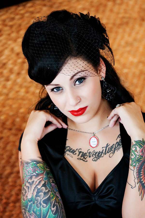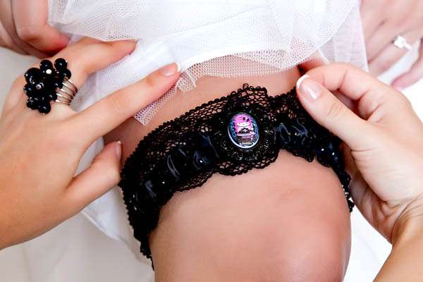 Karri walked down the aisle in a Simone Carvalli dress, a veil from Artikal Handcrafted Millinery, shoes from Betsey Johnson and Hello Kitty Jewellery by Tarina Tarantino to the theme song of E.S. Ice Dance. Her bridesmaids looks quite the goth princesses in their Stop Staring Dresses and YJ Design veils.