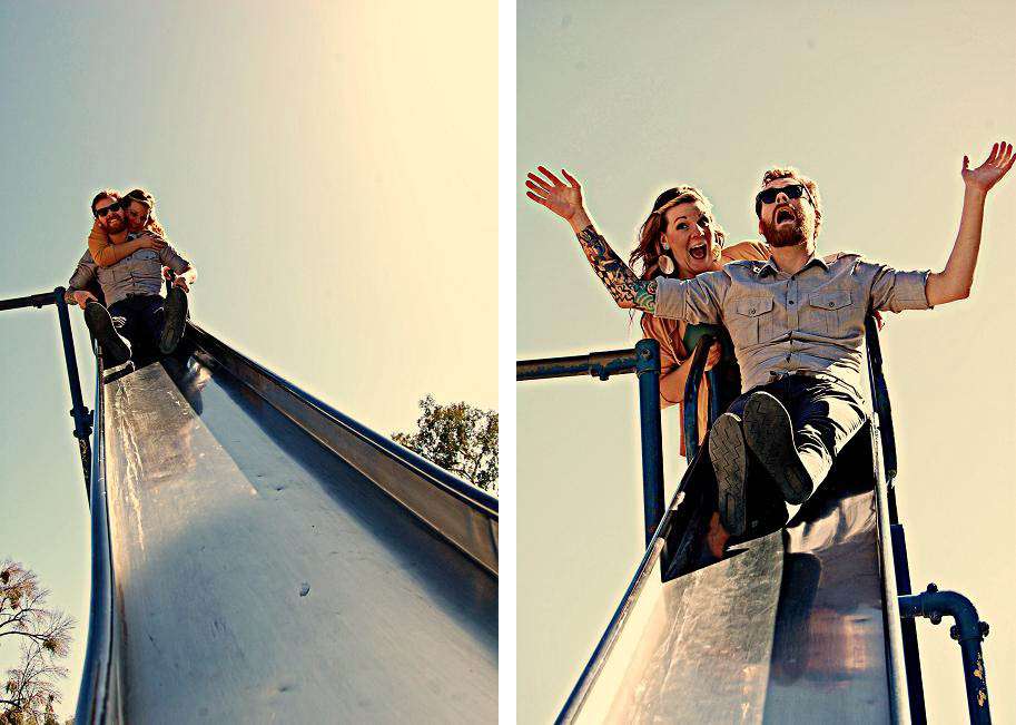 Sandra & Colin’s engagement sessions makes me smile! You might recognise Sandra, as she was one of my Top 10 entries for my contest of LOVE (she’s the gal with the ‘Rock n Roll’ moustache – don’t ya just love it?!) so I was over the moon to receive this photo session in my inbox from their photographer Jes. Adorable, goofy, ballsy, fun…you gotta love these two!