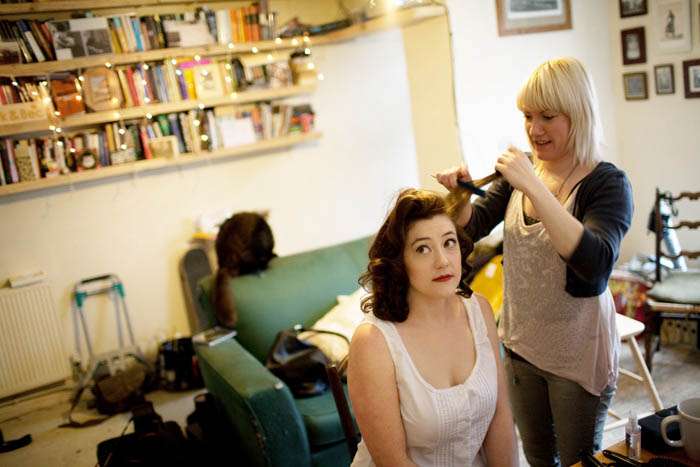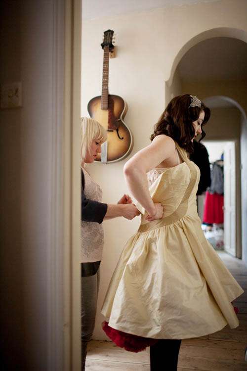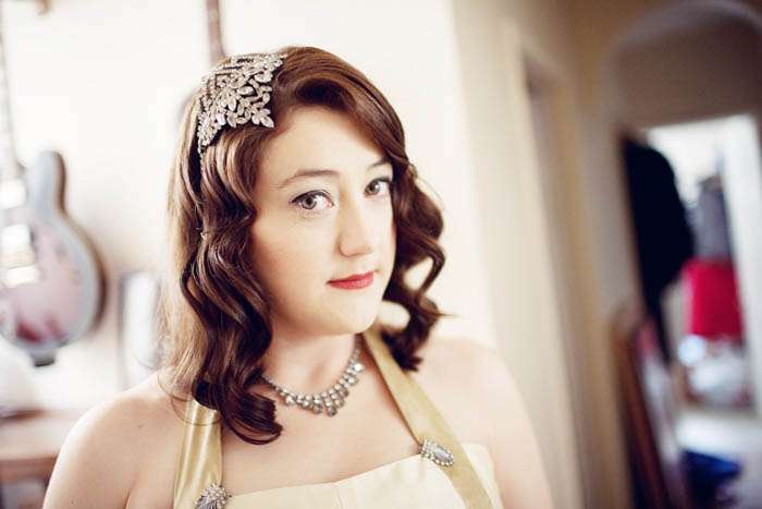 I’ve got another Luella’s Boudoir-related post for you now (can to tell I’m excited about tonight?!) Becci & Mark’s wedding is a pretty special one, for more reason than one. Not only did the pair find their photographer David McNeil through Rock n Roll Bride, but Becci also found and discovered the amazing vintage jewellery experts, Magpie Vintage. Who wouldn’t fall in love with their amazing designs after all!? As a DIY bride (Becci’s made her own dress from an original 1930’s pattern as well as her flowers and all the decor and details for their wedding) unfortunately the jewellery pieces she fell in love with were slightly out of her price range. However with a little bit of Rock n Roll Bride magic I was able to pull a few strings for her and the lovely ladies at Magpie Vintage were kind enough to lend her the gorgeous headband and necklace you see her wearing! How amazing is that?!