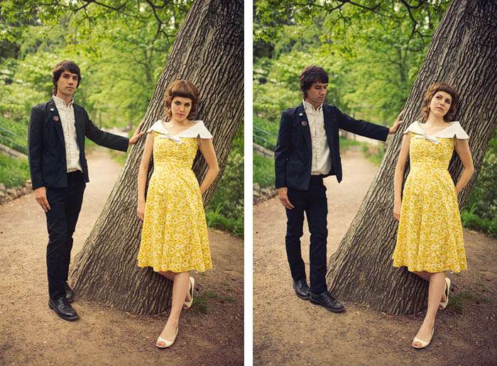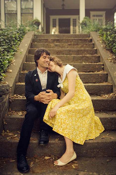 Philip is actually the front man in a 70’s style punk band called RALPH and lives with Anela in the Little 5 Points / East Atlanta area which is a very hipster / art scene area full of vintage clothing stores, art galleries, concert venues, coffee houses, and hole in the wall restaurants and bars (of course!) Anela got her gorgeous yellow dress from Stefan’s Vintage Clothing in Little 5 Points, Atlanta and Philip’s suit is also vintage but he’s had it for so long he doesn’t remember where it came from.
