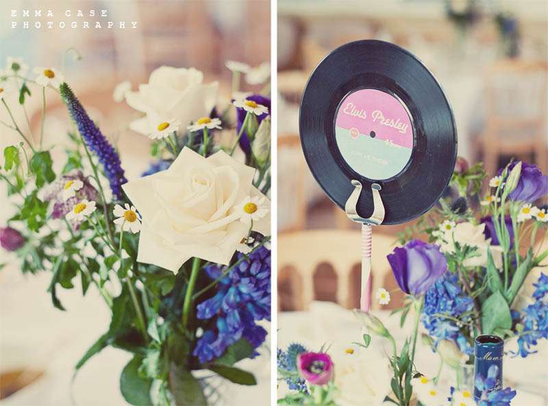 Even the table decorations were cool…. cute homemade vinyls with music legends such as Elvis as table names, gorgeous wild flowers and cute badges as favours. Oh and an old vintage typewriter for guests to write little messages! Everything was finished off with some kick ass music, lots of dancing and The Photo Booth. I’m tellin’ ya the whole thing was just beyond ACE.”