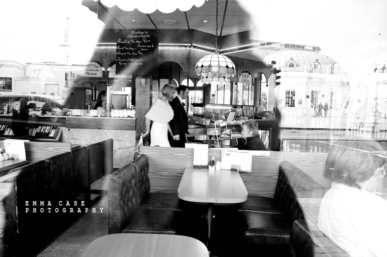 “The ceremony was beautifully relaxed and then whilst the wedding party celebrated with glasses of champagne I was given 45 whole minutes with Liz and Steve… (big grin). We walked along the pier and then found the most amazing little retro cafe along the seafront… (these shots might actually be my favourite ever).