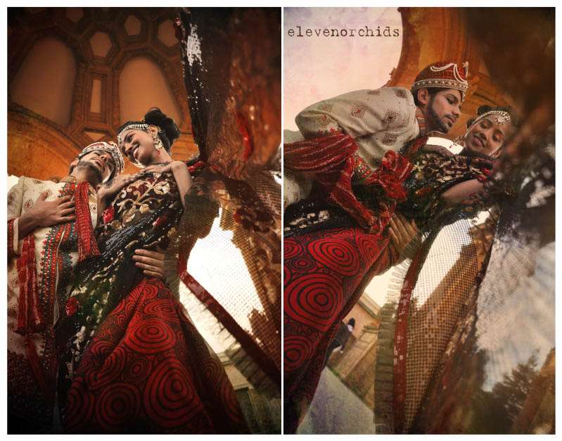 This fashion shoot was sent over by Annie & Benjamin of Elevenorchids Photography. The shoot took place at the Palace of Fine Art in San Francisco and was set up to showcase the glamour and gorgeousness of Bollywood.