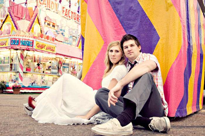 Hayley & Brett’s funfair/carnival themed love shoot makes me feel all playful. Gotta love a couple who can have a blast together! Together for a little over 2 years, this pair found comfort in each other through some difficult times at the beginning of their relationship. They decided to do their pre-wedding shoot at a carnival to symbolize their fun personalities and has a celebration of their love for one another. Her dress is vintage which she found at a thrift store and their flowers were done by Mignonne Handmade.