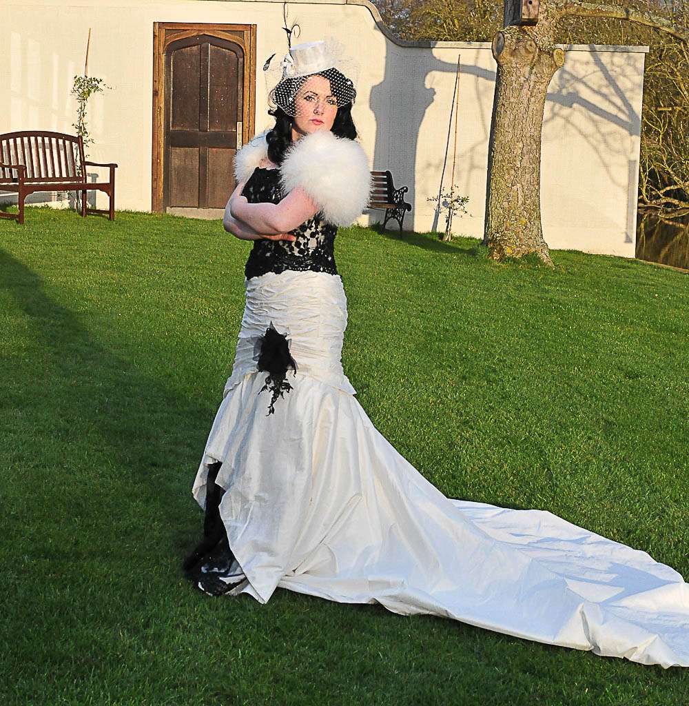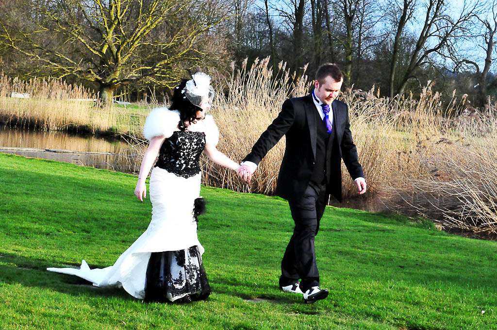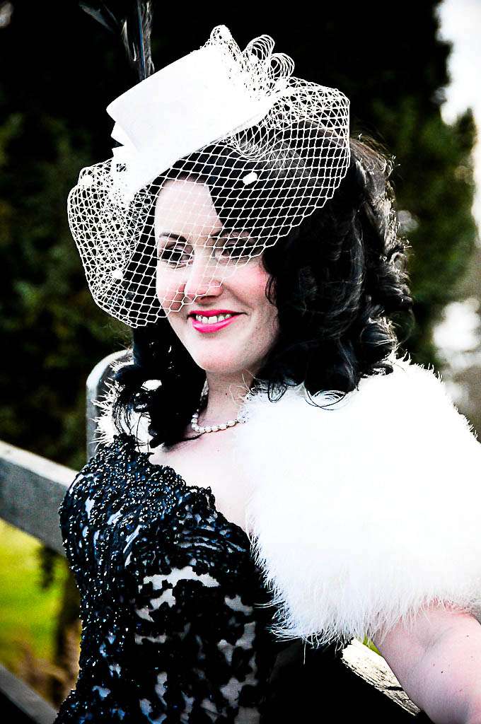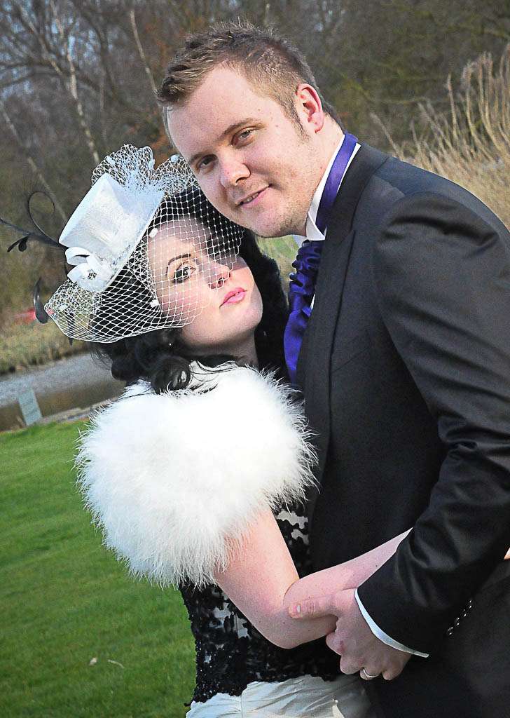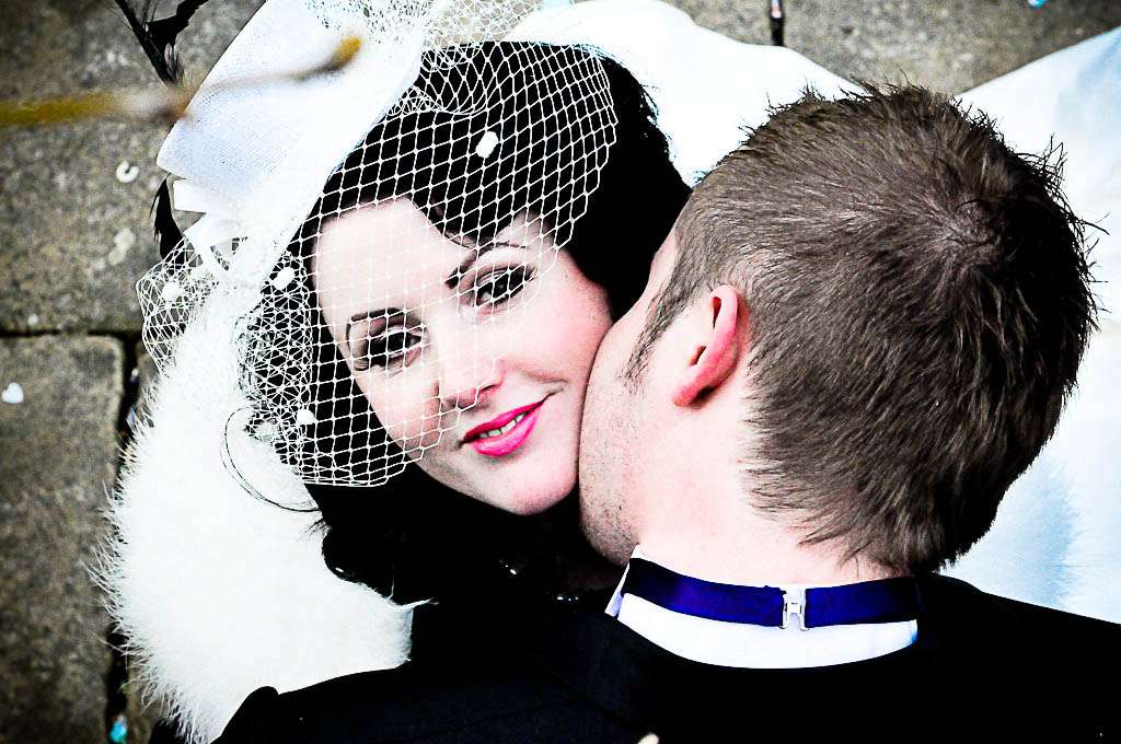 At first Toni thought she would have to conform to the princess dress/long veil/girly girl kind of wedding however she knew it really wasn’t for her “I’d snarl when I tried on dresses, and with my tattoos hanging out I just knew it wasn’t right.” Then she found her gorgeous black lace dress, Puerto Rico by Ian Stuart, in a magazine and she was smitten. “It looked like it had been made for me. I have always been a fan of pin-ups and took it from there with the over-all look. I never look girly and love the glamorous 40’s and 50’s so why not just base the whole thing on what me and my husband are about?! People looked at me like I was mental (which isn’t untrue) I wanted a real 40’s feel with a rock n roll edge. We are both metal/punk/rock lovers and thought we would try to incorporate those aspects into the day. We danced to Metallica, even the father/daughter dance was to Guns n Roses.”