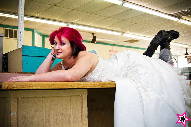 Pink hair, tattooed bride, railroad, laundromat…what’s not to love about Eve’s rockstar trash the dress shoot huh?!