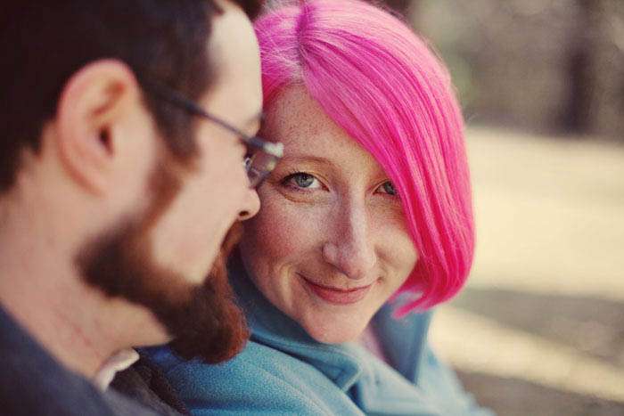 As a lover of all things pink (headed) I’m excited to share that all three of today’s posts feature gorgeous pink tresses! Kicking things off is the engagement session of Fred & Martine. She told us that she once went to a party wearing a wig this exact colour and she got so many compliments she decided to make it permanent! It’s been pink ever since…