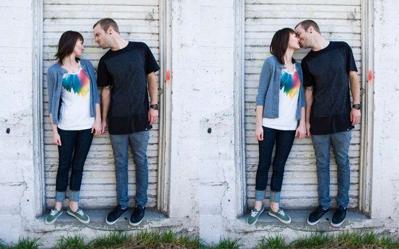 Allie & Patrick’s engagement was designed around the idea of balance and contrast. They decided to go for two different looks “One, a very warm, vintage-y, backlit and natural look with texture and colors like yellows, browns and whites, and the second, very cool, city street, look with lots of blues, turquoise and blacks! photographer Rhys explained. “The idea and challenge was to shoot both looks similarly in terms of composition, but come out with two very different looking sessions, so that they could be displayed side by side allowing the contrasts to really play off of each other. Allie and Patrick loved it because it allowed them to show off all aspects of their personalities; both are incredibly stylish, but also love to just be ridiculous and have fun.”